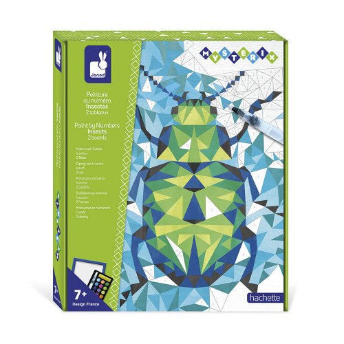 Le Kit Créatif Peinture par Numéro Insectes de Janod est conçu pour les enfants dès 7 ans, offrant une activité artistique complète pour réaliser deux tableaux d'insectes en suivant une technique de peinture par numéro.