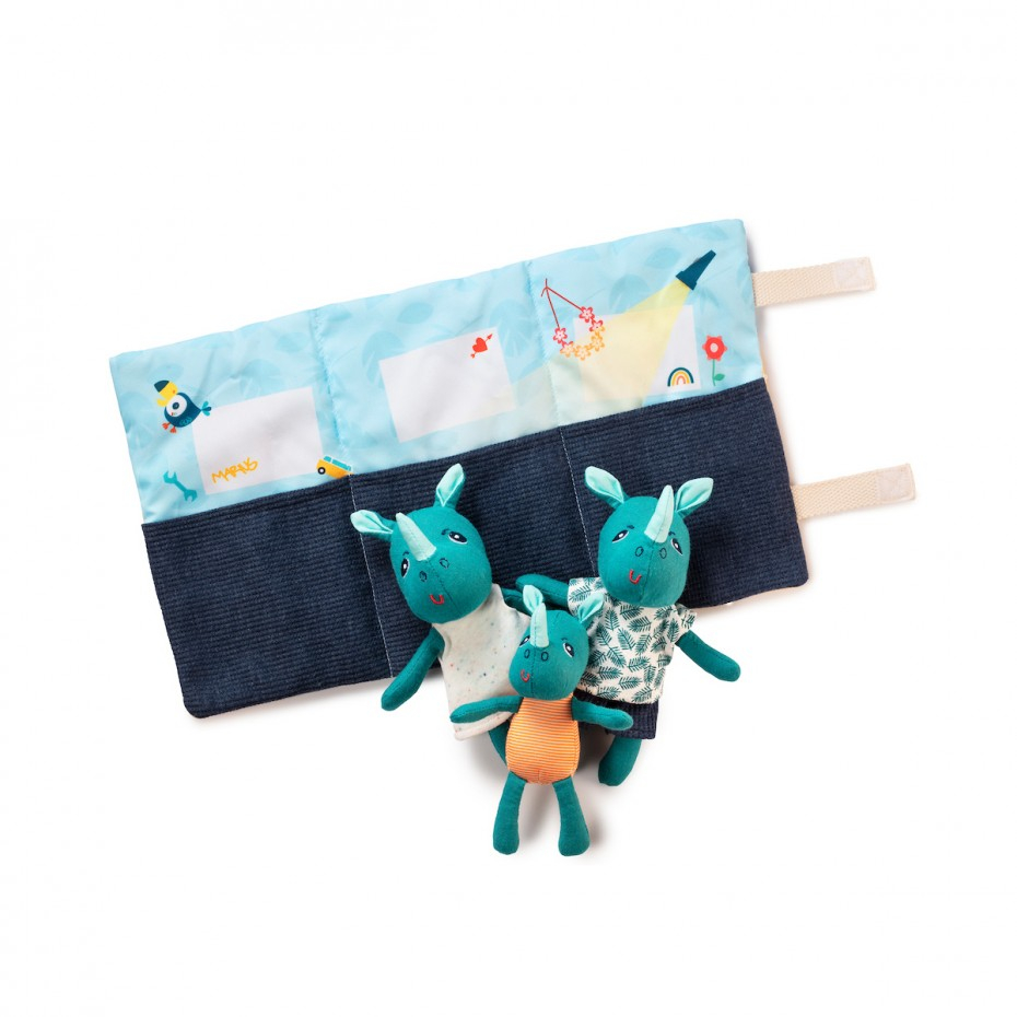 Découvrez La famille de Marius le rhino de Lilliputiens : un ensemble de trois mini peluches en lin avec vêtements en coton, accompagnées d'une housse réversible en polyester. Idéal pour les enfants dès 2 ans, ce jouet éco-responsable stimule l'imagination et la motricité fine.