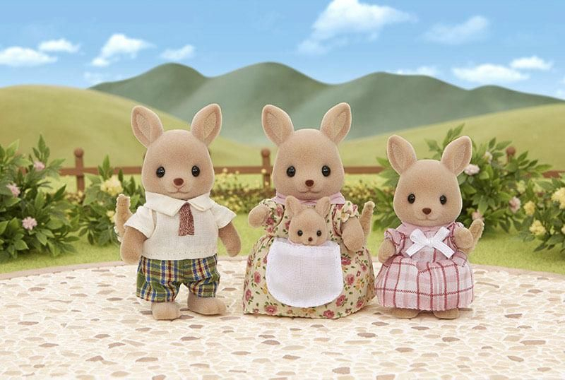 La famille Kangourou Sylvanian Families comprend quatre figurines articulées et habillées avec soin : Papa Bruce, Maman Shelia, Fille Joanne et Bébé Hilton. Parfait pour enrichir l'univers de jeu des enfants.