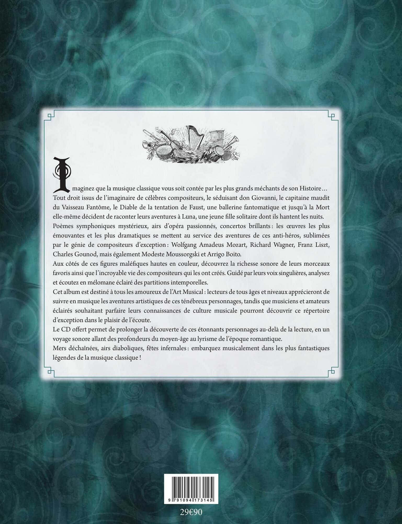 Cet album est destiné à tous les amoureux de l’Art Musical : lecteurs de tous âges et niveaux apprécieront de suivre en musique les aventures artistiques de ces ténébreux personnages, tandis que musiciens et amateurs éclairés souhaitant parfaire leurs connaissances de culture musicale pourront découvrir ce répertoire d’exception dans le plaisir de l’écoute.