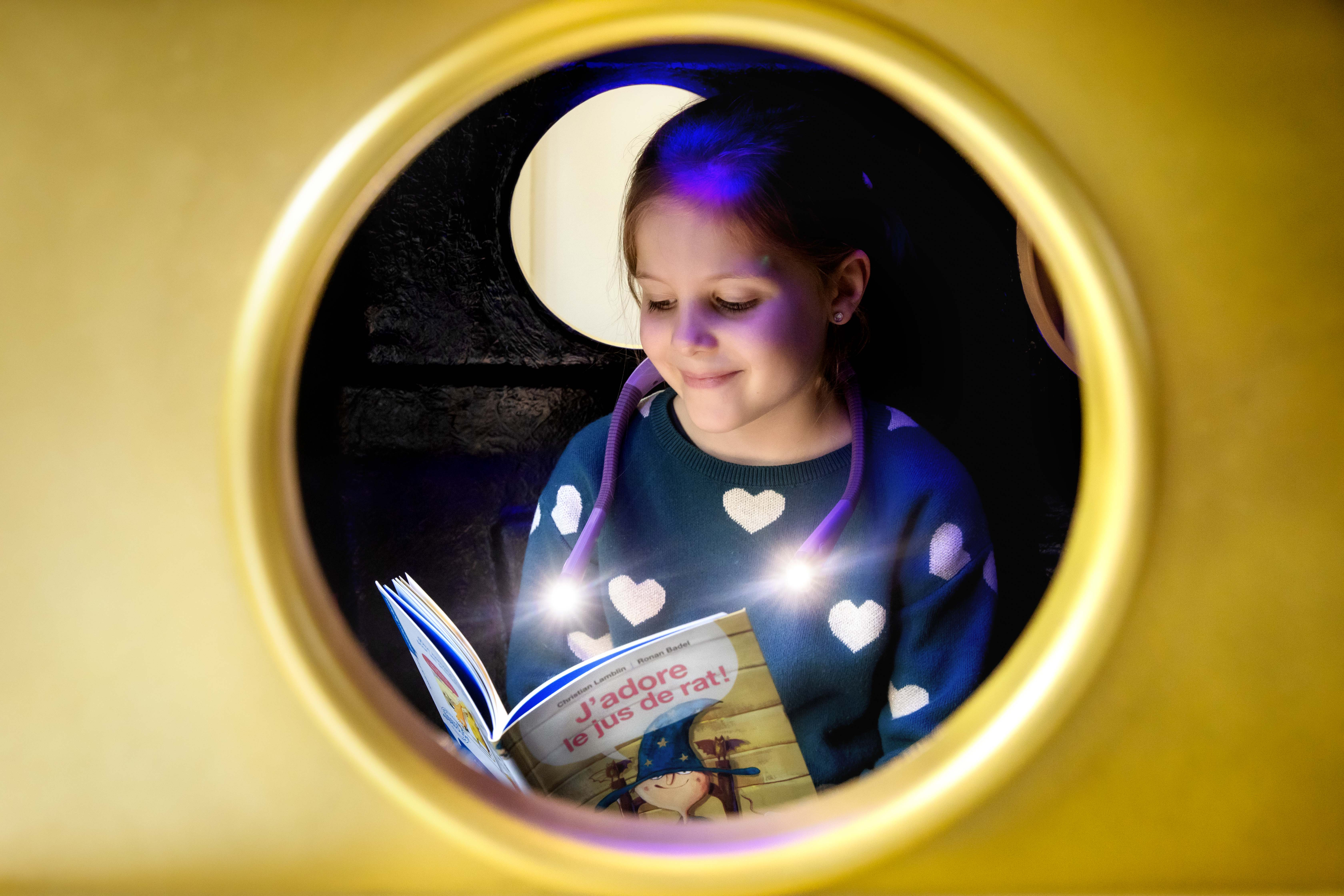 La Lampe de lecture Mauve Babs est une lampe en forme de tulipe mauve avec un bras flexible et un clip antidérapant, idéale pour lire sans déranger votre entourage.