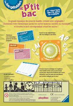 Une toute nouvelle édition du jeu du Bac des Incollables avec 140 catégories originales qui amuseront toute la famille. Choisissez entre les thèmes Classique, Humour ou Insolite, tirez une lettre au sort grâce à la roulette « alphabet » et creusez-vous les méninges ! Dépêchez-vous car vous devez être le premier à trouver les 6 mots ! Dès 6 ans.
