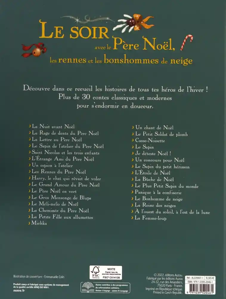Découvrez "Le Soir avec le Père Noël, les rennes et les bonshommes de neige", un recueil de 40 contes classiques et modernes pour plonger dans la magie de Noël et endormir votre enfant en douceur.