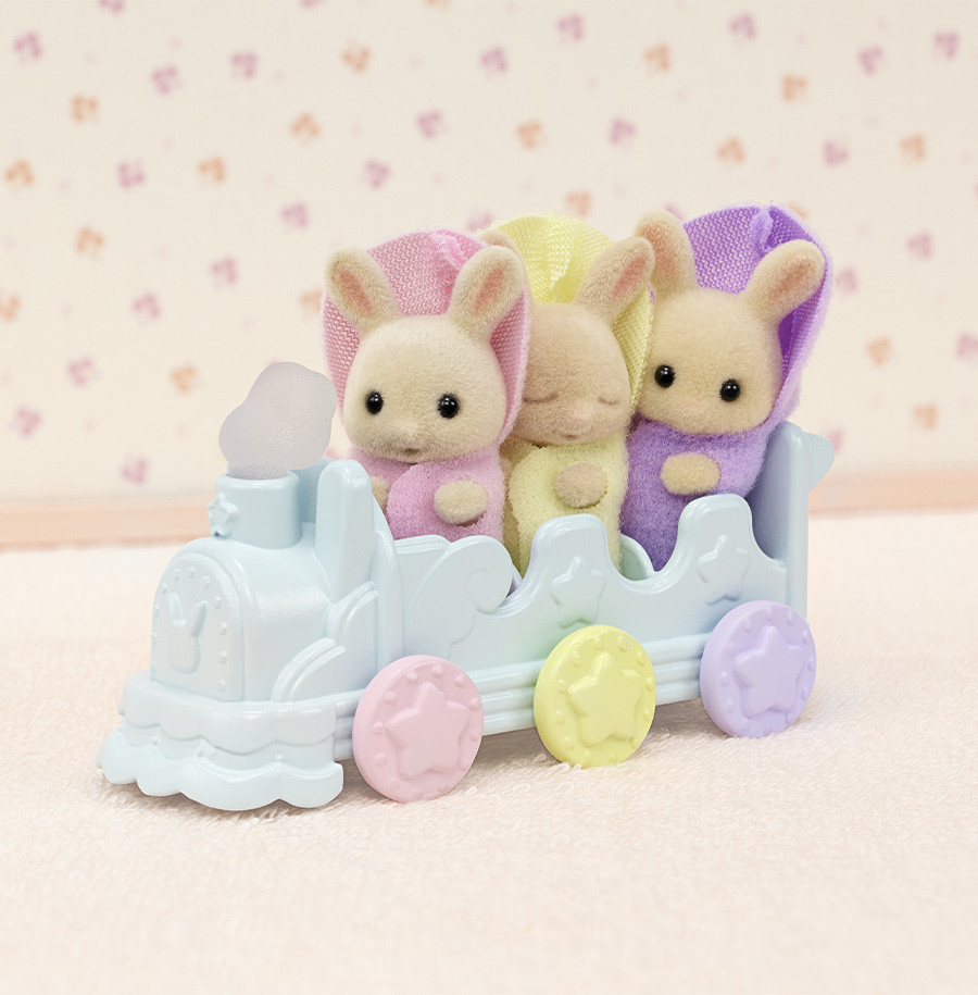 On retrouve également 6 jouets de bain pour faire de l'heure du bain un véritable moment de détente et de jeu pour les triplés Sylvanian Families. Pour compléter le tout, la petite locomotive à 3 places permettra aux bébés d'aller se coucher à vitesse grand V !