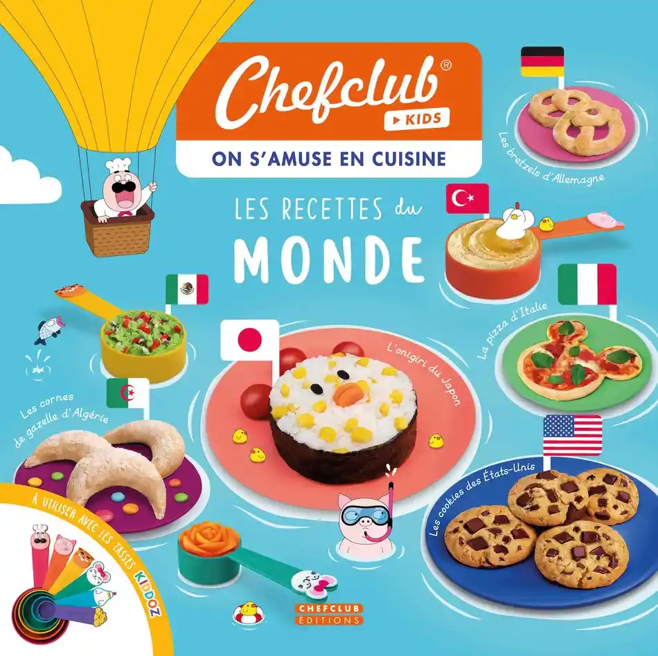 Découvrez 'Les recettes du monde' de Chefclub Kids : plus de 20 recettes internationales illustrées, des anecdotes culturelles, des QR codes pour des vidéos explicatives, et des pages lavables. Un voyage culinaire ludique pour les enfants dès 4 ans.