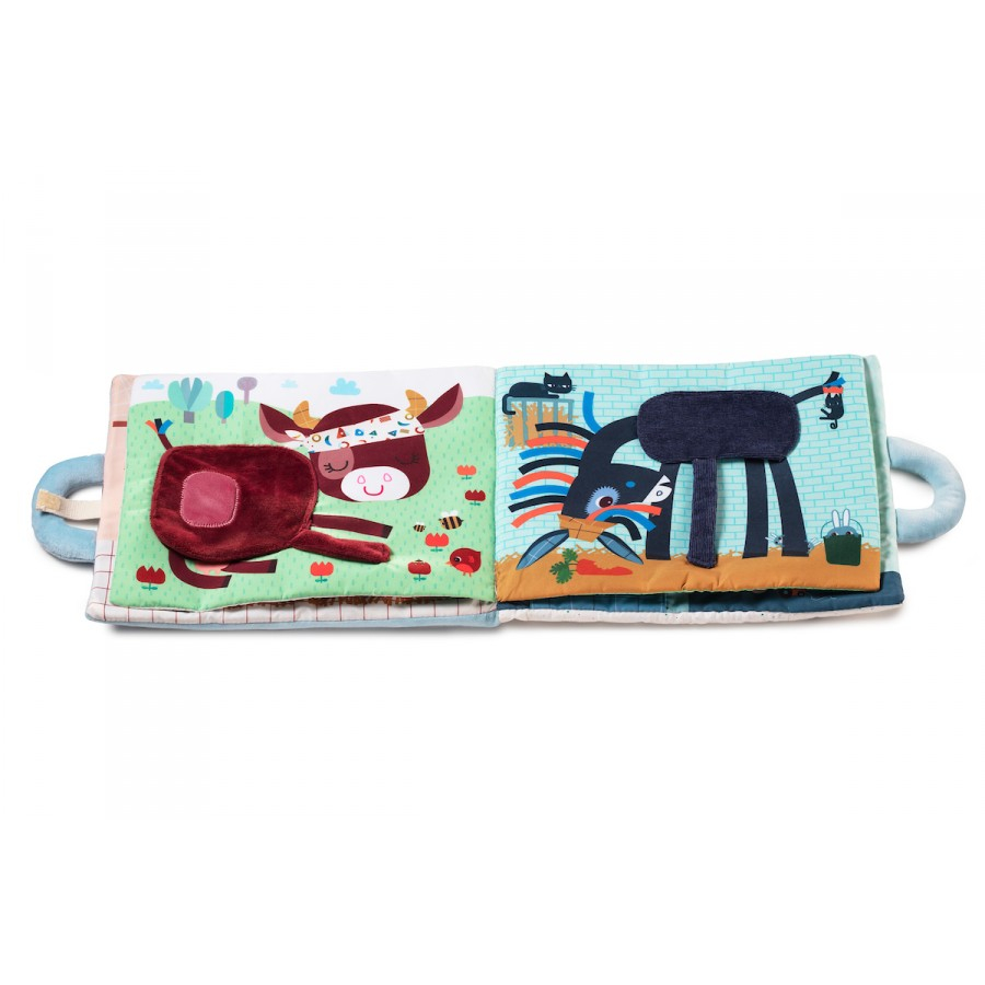 Le Livre d'activités en tissu Baby Boom de Lilliputiens est un jouet d'éveil interactif pour les enfants dès 18 mois, offrant une découverte ludique des animaux de la ferme et de leurs bébés, tout en stimulant la motricité fine et l'imagination.