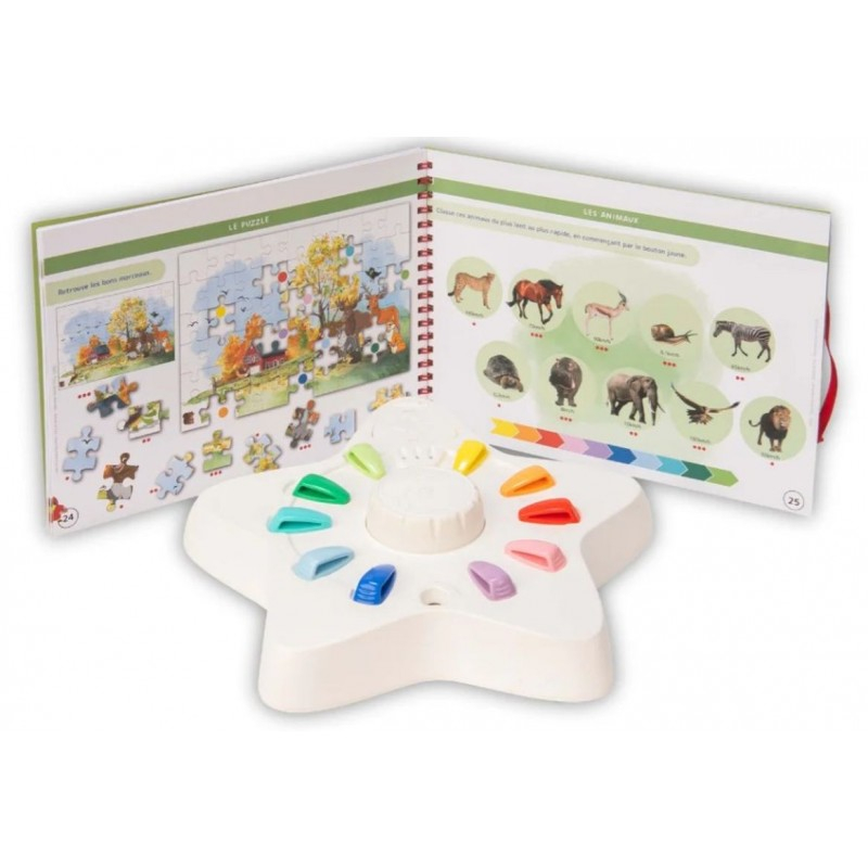 Le Livret Contes et Fables d'Étoilium propose aux enfants de 5 à 8 ans de découvrir huit contes et fables classiques à travers des jeux et des questions, avec des QR codes audio pour écouter les histoires.