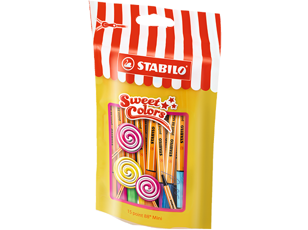 STABILO point 88 mini est particulièrement adapté aux petites mains et se glisse partout sac, trousse.... original avec un sachet gourmand facile à refermer grâce à sa fermeture à glissière Il séduira les filles comme les garçons, et les petits comme les grands!