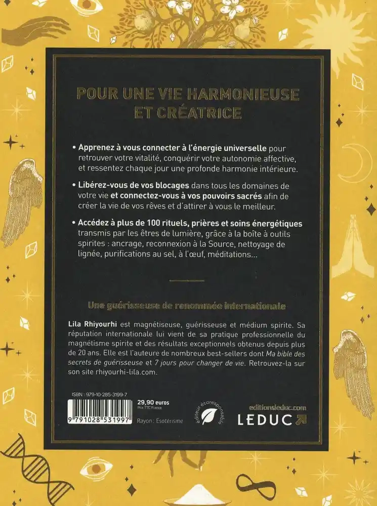 Apprenez à vous connecter à l'énergie universelle pour retrouver votre vitalité, conquérir votre autonomie affective, et ressentez chaque jour une profonde harmonie intérieure. Libérez-vous de vos blocages dans tous les domaines de votre vie et connectez-vous à vos pouvoirs sacrés afin de créer la vie de vos rêves et d'attirer à vous le meilleur. Accédez à plus de 100 rituels, prières et soins énergétiques transmis par les êtres de lumière, grâce à la boîte à outils spirites : ancrage, reconnexion à la Source, nettoyage de lignée, purifications au sel, à l'oeuf, méditations...