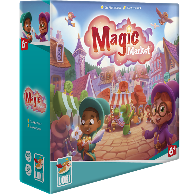 Magic Market est un jeu de société familial où les joueurs vendent des objets magiques aux meilleurs prix pour accumuler des Dragos, la monnaie du Royaume. Avec des mécaniques simples et un univers enchanteur, ce jeu est idéal pour 2 à 4 joueurs dès 6 ans.