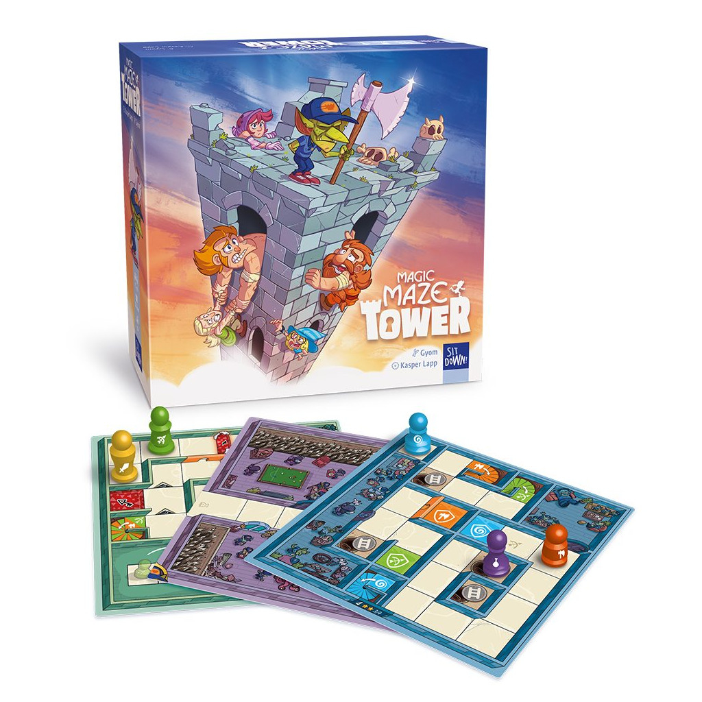 Conçu par Kasper Lapp et illustré par Gyom, Magic Maze Tower est édité par Sit Down!. Il est adapté pour 1 à 4 joueurs, à partir de 9 ans, avec des parties d'environ 30 minutes.