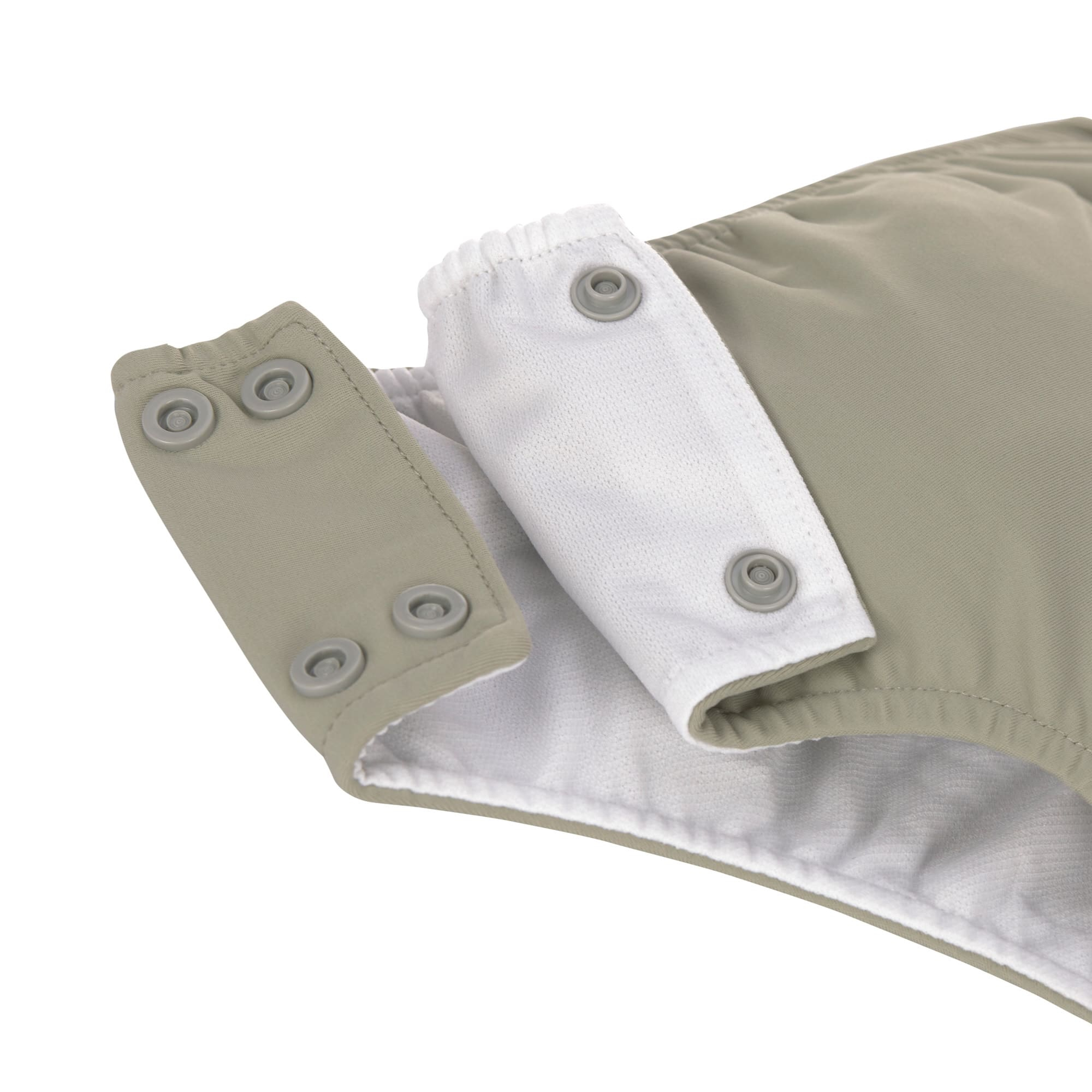 Optez pour le maillot de bain anti-fuite olive de LÄSSIG, une alternative écologique et réutilisable aux couches jetables. Confortable grâce à sa conception sans couture et pratique avec ses boutons-pressions, il est fabriqué en polyester recyclé et doté d'un système breveté absorbant l'humidité. Idéal pour des baignades sereines et respectueuses de l'environnement.