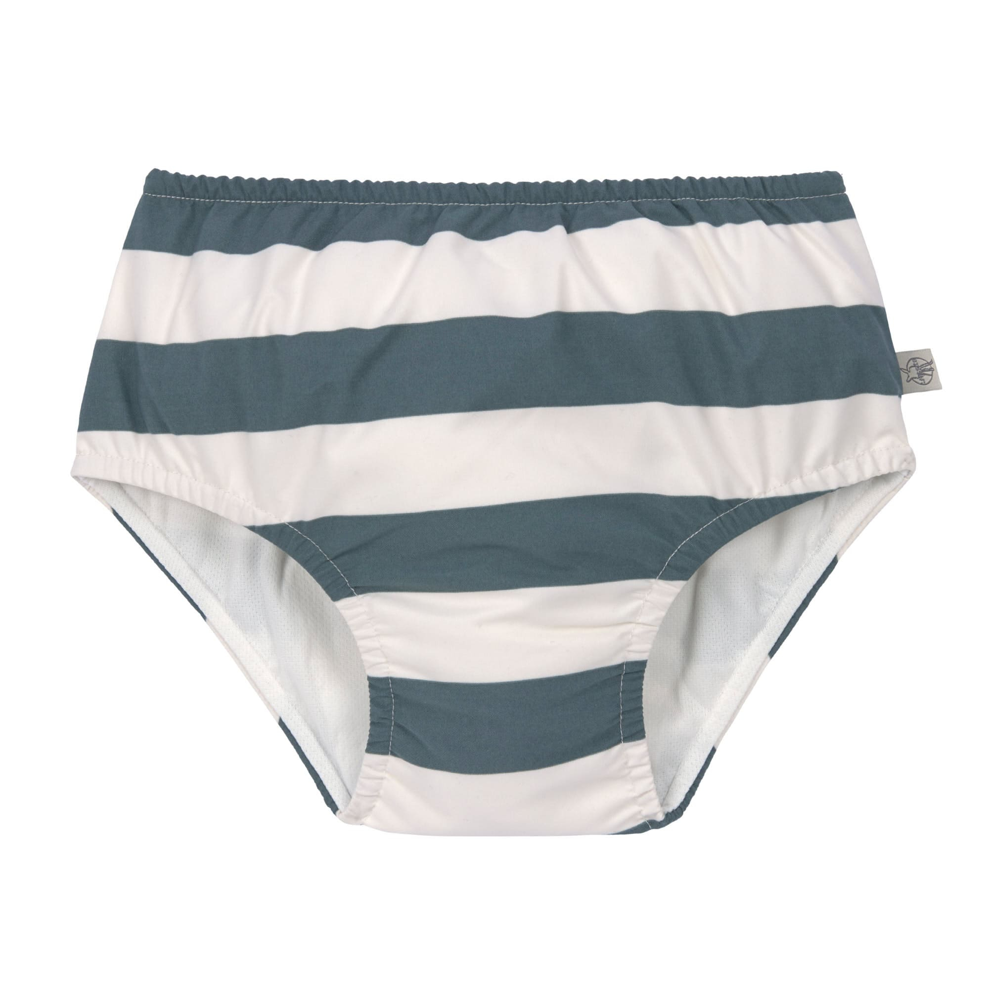Le maillot de bain couche rayé blanc cassé et bleu de LÄSSIG est une alternative écologique aux couches jetables, offrant confort et protection pour votre bébé lors de ses baignades.