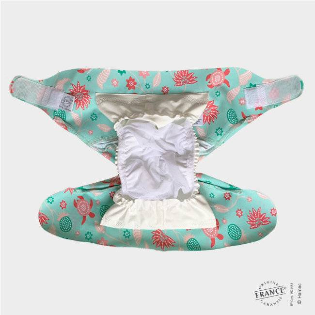 Une seule couche piscine suffit car vous pouvez glisser sous le filet de la nacelle un absorbant réutilisable fin qui assure une petite absorption quand votre bébé joue au bord de l'eau.