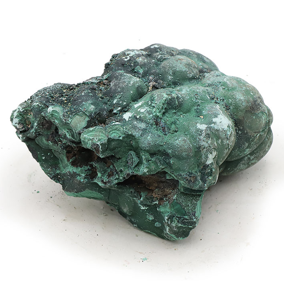 Note : En raison de sa teneur en cuivre, il est recommandé de manipuler la malachite avec précaution et de se laver les mains après contact prolongé.