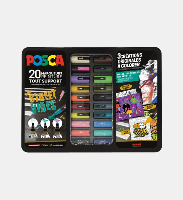 La Mallette Street Vibes de 20 marqueurs POSCA est un ensemble complet pour les passionnés d'art urbain, offrant une gamme de couleurs vibrantes et de pointes variées pour toutes vos créations.