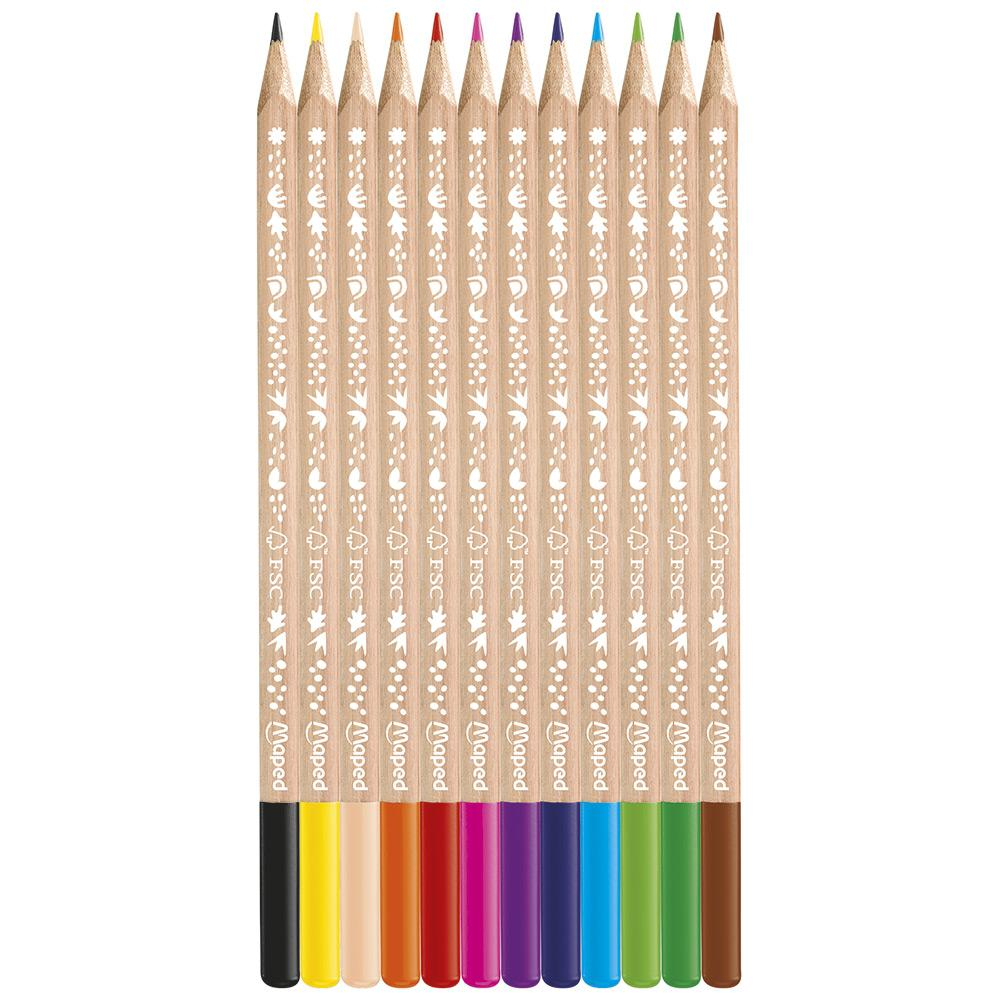 Maped - Crayons de Couleur Smiling Planet en Bois Naturel - 12 Crayons de dessin pour Enfants