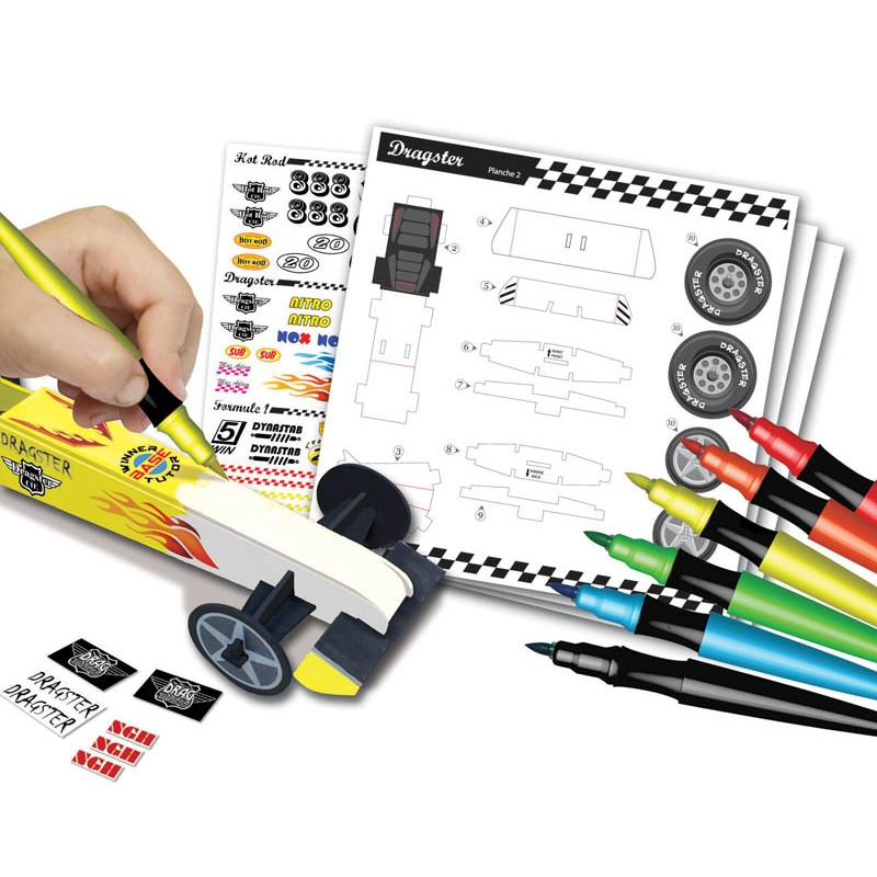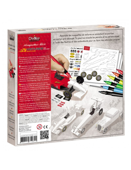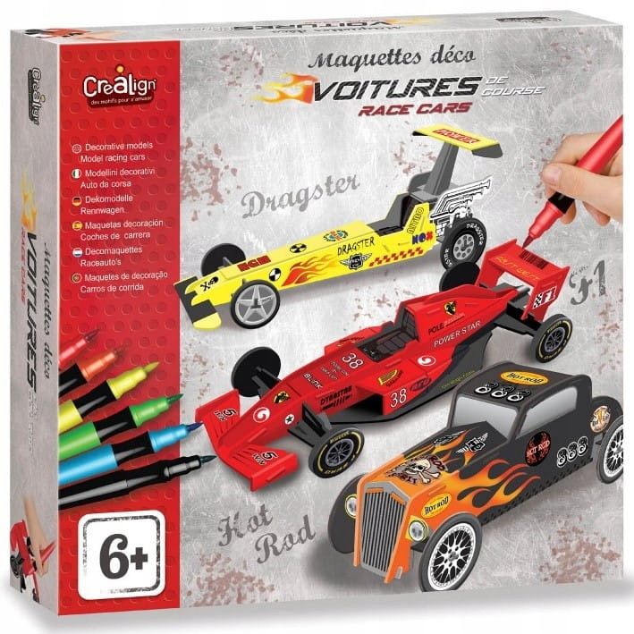 Assemblez et personnalisez trois maquettes de voitures de course en carton avec le coffret Créa Lign'. Contient 3 modèles, 6 feutres, des autocollants et une notice. Idéal pour les enfants de 6 à 12 ans.