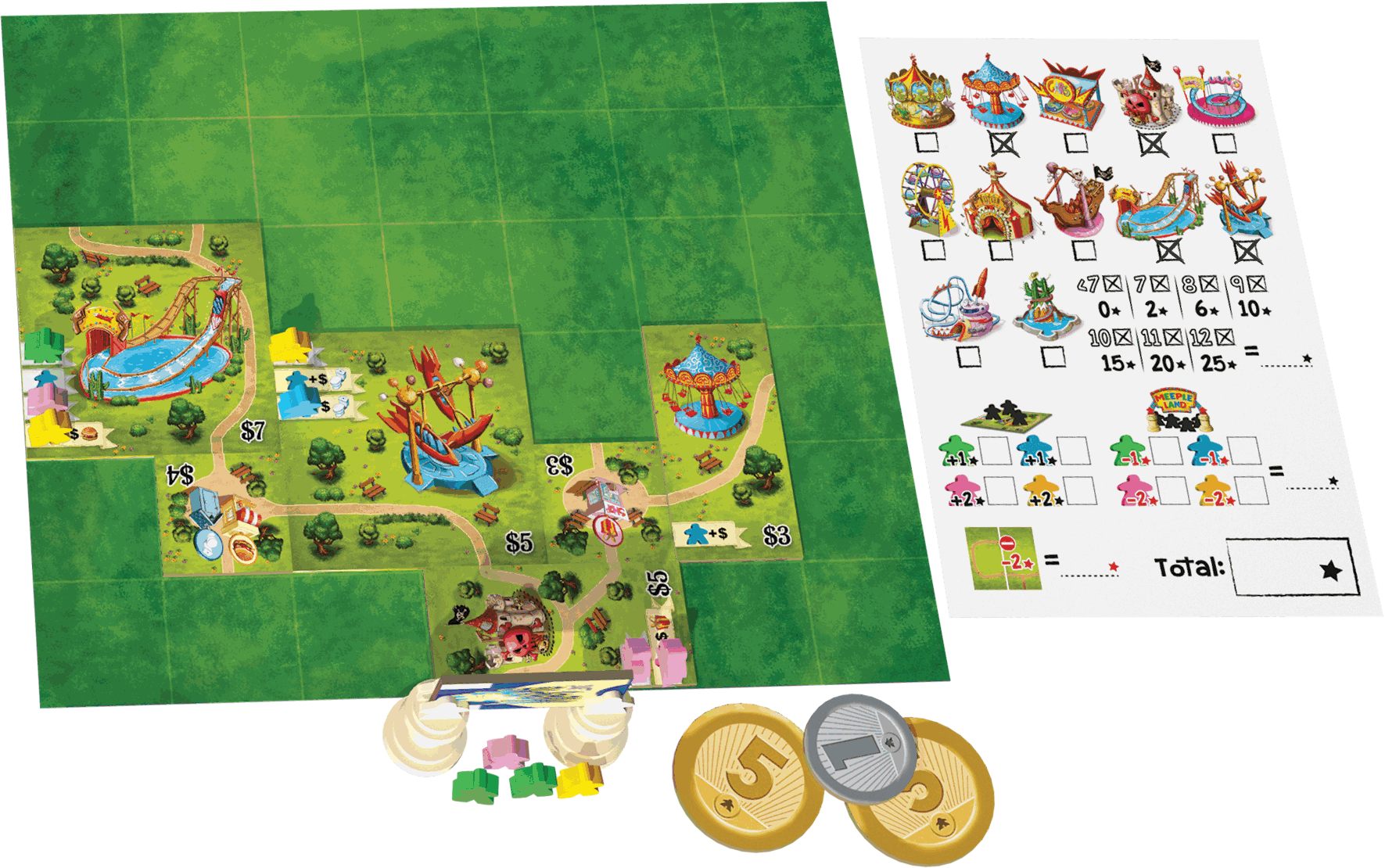 Apportez de nouvelles attractions à votre Parc et proposez les meilleurs services du moment à vos visiteurs. S’ils sont satisfaits, ils vous feront cumuler un maximum de points de Réputation. Choisissez judicieusement vos attractions et agencez bien les différentes allées de votre Parc afin de générer le moins d'impasses possibles. Les impasses et les visiteurs insatisfaits mettront en danger votre belle réputation. En fin de partie, votre Parc sera évalué et le joueur possédant le plus de points de Réputation sera déclaré vainqueur.