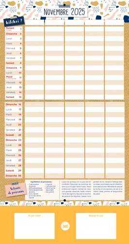 Le Kifékoi 2026 de Mémoniak est un organiseur mensuel aimanté de 16 mois (septembre 2025 à décembre 2026) conçu pour faciliter la planification familiale. Il propose des colonnes pour jusqu'à 5 personnes, des astuces culinaires, les dates des vacances scolaires, des stickers, une pochette de rangement et des aimants solides pour une fixation sur le réfrigérateur.