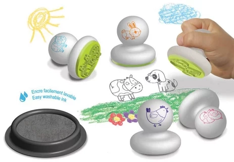 Initiez votre enfant aux loisirs créatifs avec le coffret 'Mes Premiers Tampons - Les Animaux De La Ferme' de Créa Lign'. Ce kit comprend 5 tampons en mousse faciles à manipuler et un encreur lavable, parfaits pour développer la motricité fine et l'imagination des tout-petits dès 12 mois.