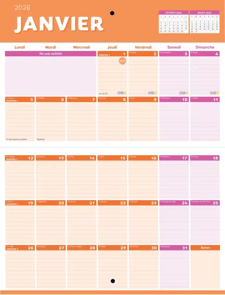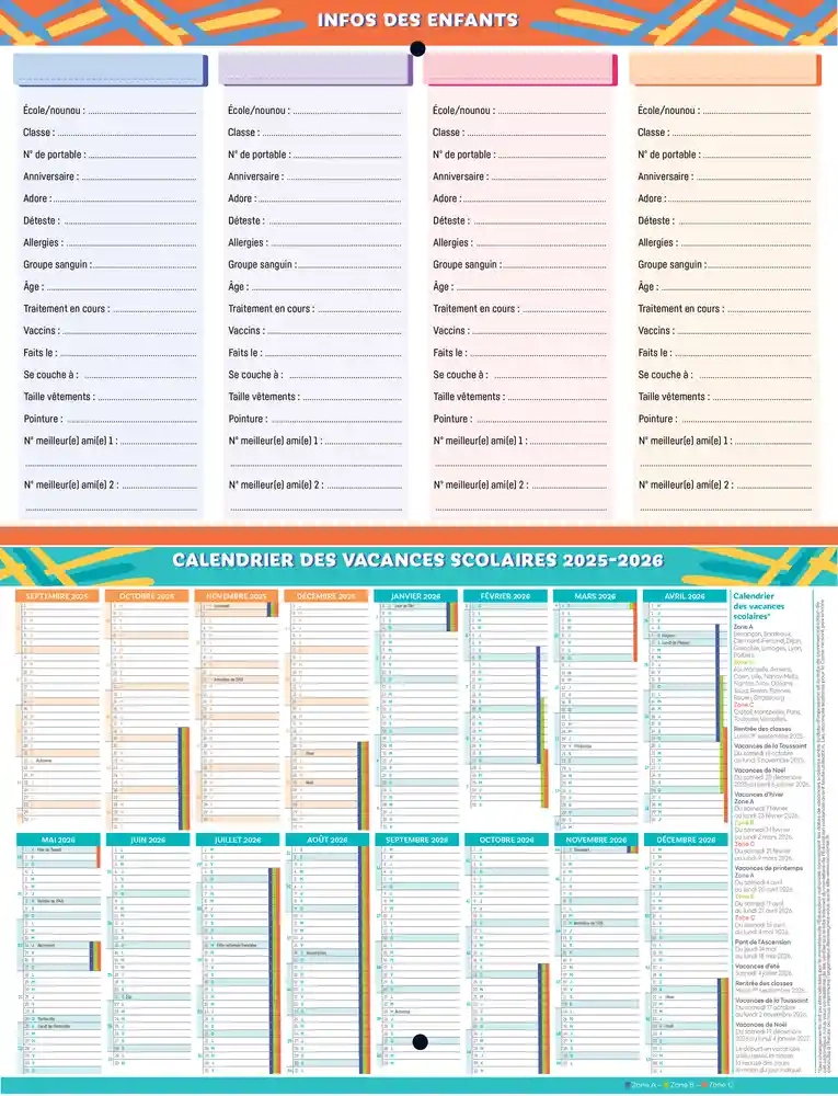 Le Mini-organiseur familial Mémoniak - Poche Edition 2025-2026 est un calendrier compact de 16 mois, de septembre 2025 à décembre 2026, conçu pour faciliter l'organisation quotidienne de la famille. Il comprend des pages mensuelles, des listes de courses, des calendriers saisonniers et scolaires, des aimants, des stickers, une pochette de rangement et un crayon. Idéal pour alléger la charge mentale et partager les responsabilités familiales.