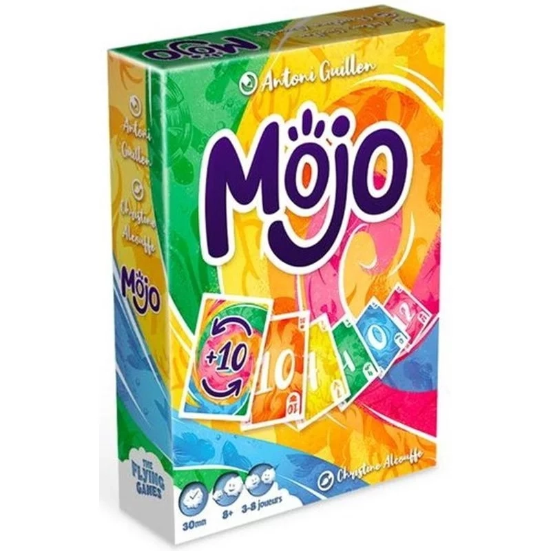 L'objectif est de marquer le moins de points possible. Une possibilité est d'arriver à poser toutes ses cartes. L'autre d'avoir des cartes en main qui marquent peu, parce qu'elles ont des petites valeurs et grâce au fait que des cartes identiques ne marquent qu'une fois. Pour avoir des chances de gagner, il faut préparer sa sortie dès le départ et c'est là tout le sel du jeu! Parfait pour des parties entre amis ou en famille, les joueurs novices apprécient Mojo autant que les joueurs initiés.