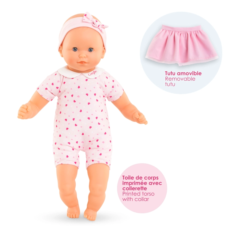 Découvrez Mon Adorable Petit Poupon Cœurs de Corolle, un poupon de 30 cm au corps souple et à la délicate senteur de vanille, idéal pour les enfants dès 12 mois.