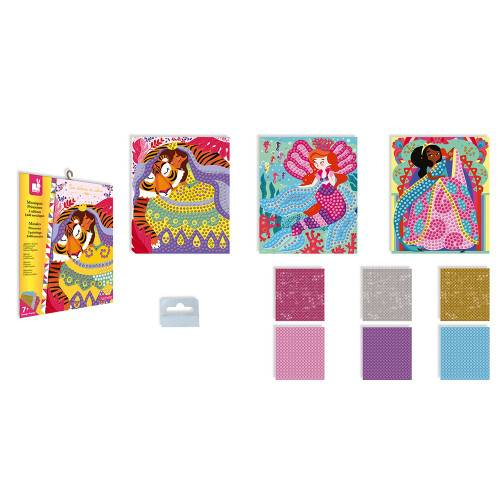 Le kit Mosaïques Princesses de Janod permet aux enfants dès 5 ans de créer 8 tableaux féeriques en décorant avec 1 100 mosaïques en mousse et strass. Une activité idéale pour développer la motricité fine et la concentration.