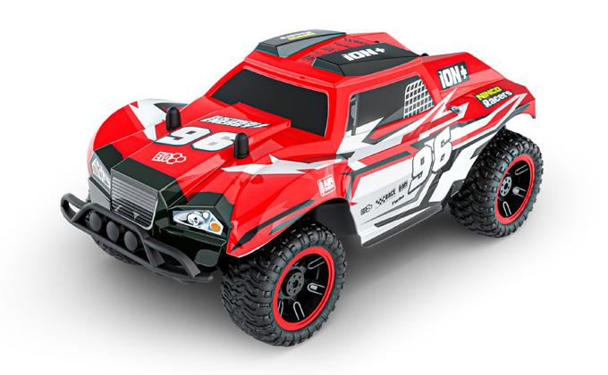 Monstre 1/18 avec une grande rotation et la technologie 2.4Ghz pour les courses multijoueurs. Batterie Li-Ion incluse et corps très résistant.