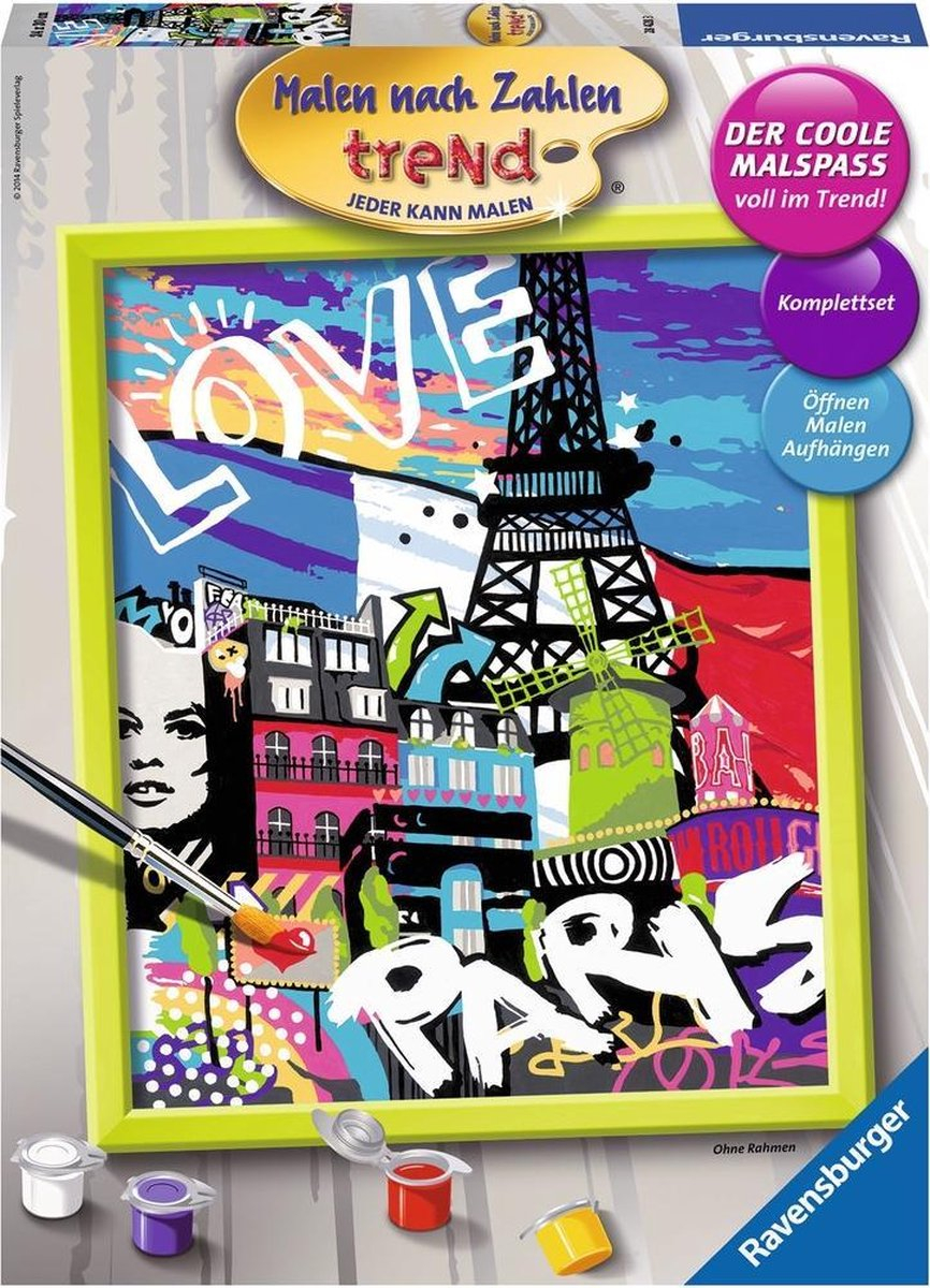 Créez une superbe peinture de Paris avec le kit 'Love Paris' de Ravensburger. Ce coffret complet de 30x40 cm est idéal pour les adultes et adolescents dès 12 ans, offrant une expérience artistique relaxante et écoresponsable.