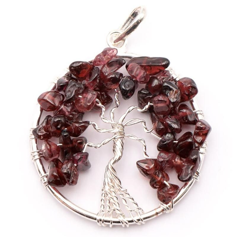 Pendentif arbre de vie 40mm grenat rouge sur collier cordon
