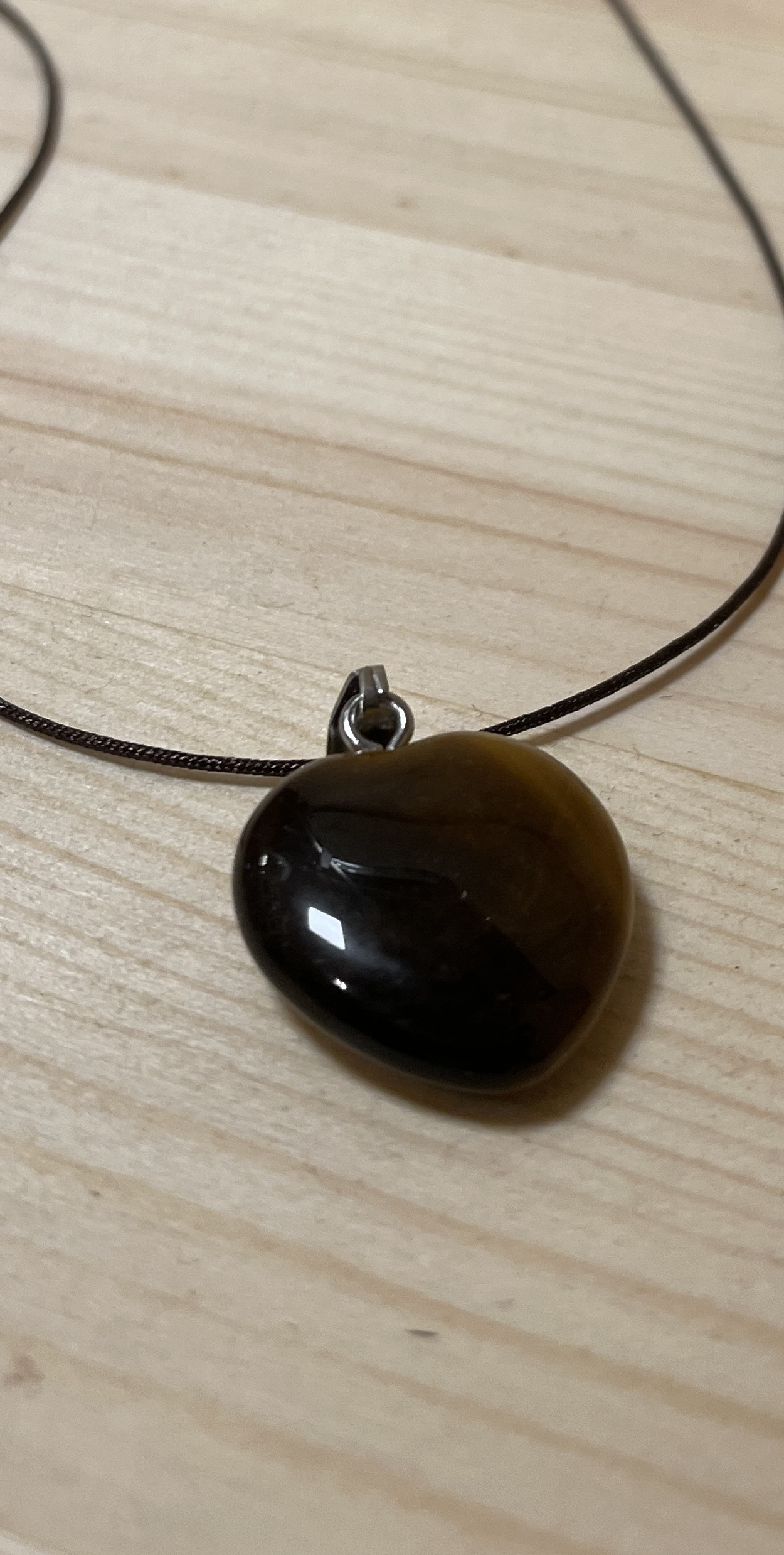 Pendentif coeur 20mm Oeil de tigre sur cordon