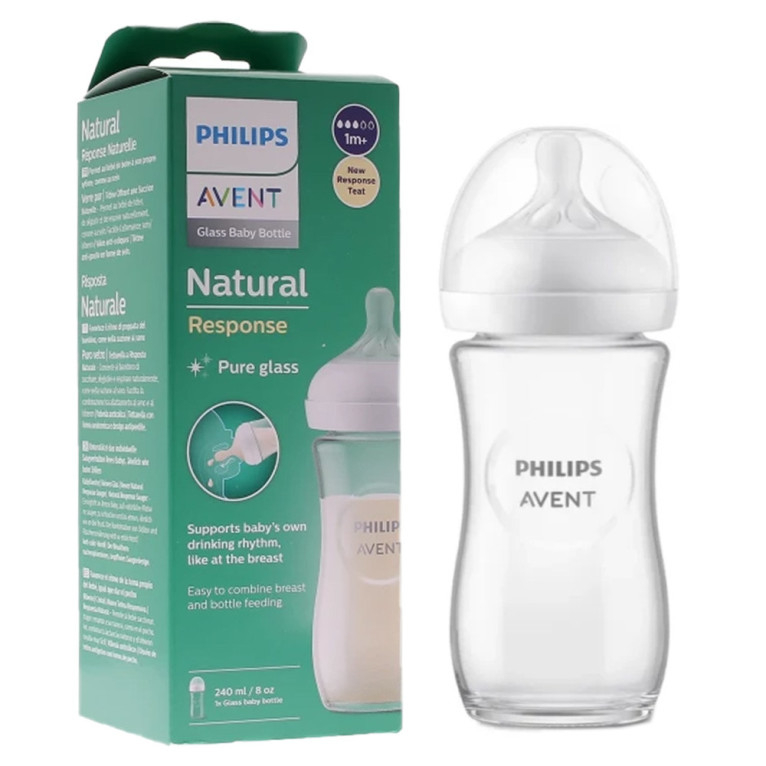 Le biberon en verre Philips AVENT Natural Response 240 ml est conçu pour respecter le rythme naturel de tétée de votre bébé, facilitant l'alternance sein/biberon. Sa tétine imite la forme du sein, avec une valve anti-coliques et un verre borosilicaté résistant. Sans BPA et facile à nettoyer.