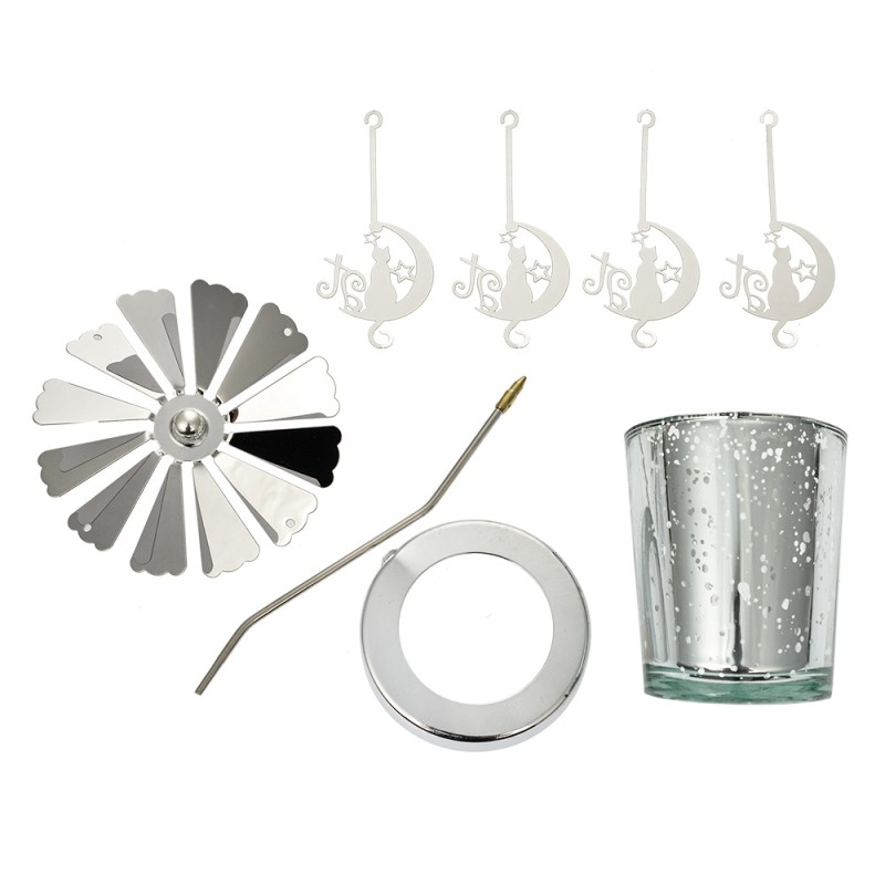 Porte-bougie Ø 8x17 cm Couleur argent Verre Métal Chats