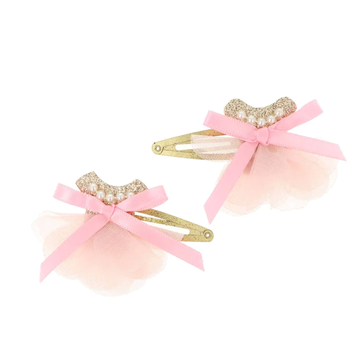 Lot de 2 pinces dorées avec robe ballerine. Couleurs de la robe : gris clair, ivoire et rose