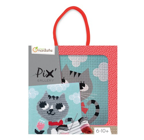 Le kit de broderie Pix Gallery Chat d'Avenue Mandarine est une activité créative idéale pour les enfants dès 6 ans, leur permettant de réaliser une broderie au point de croix représentant un charmant chat.