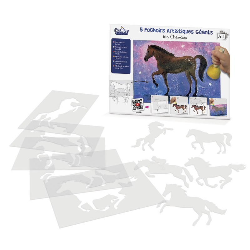 Offrez à votre enfant une immersion dans l'univers équestre avec les pochoirs artistiques géants "Les chevaux" de Créa Lign'. Cet ensemble comprend :