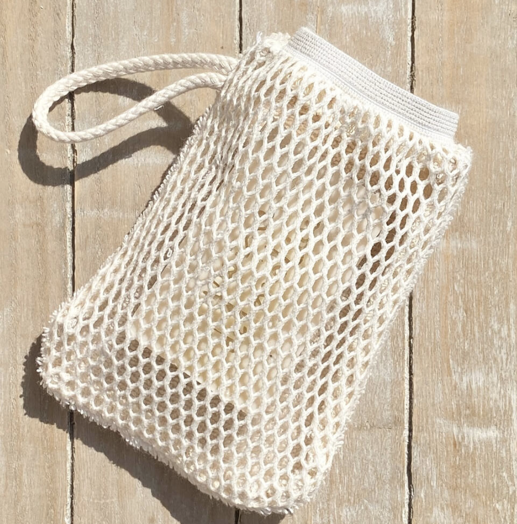 Multi usage et élégant, un pochon pour emporter et conserver votre savon préféré. Double face, il est ultra doux d'un côté et permet un léger gommage de l'autre.