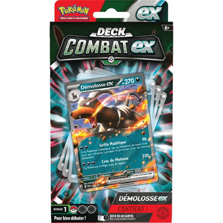 Le Deck Combat Démolosse-ex est un deck prêt à l'emploi de 60 cartes mené par Démolosse-ex, accompagné d'accessoires essentiels pour jouer.