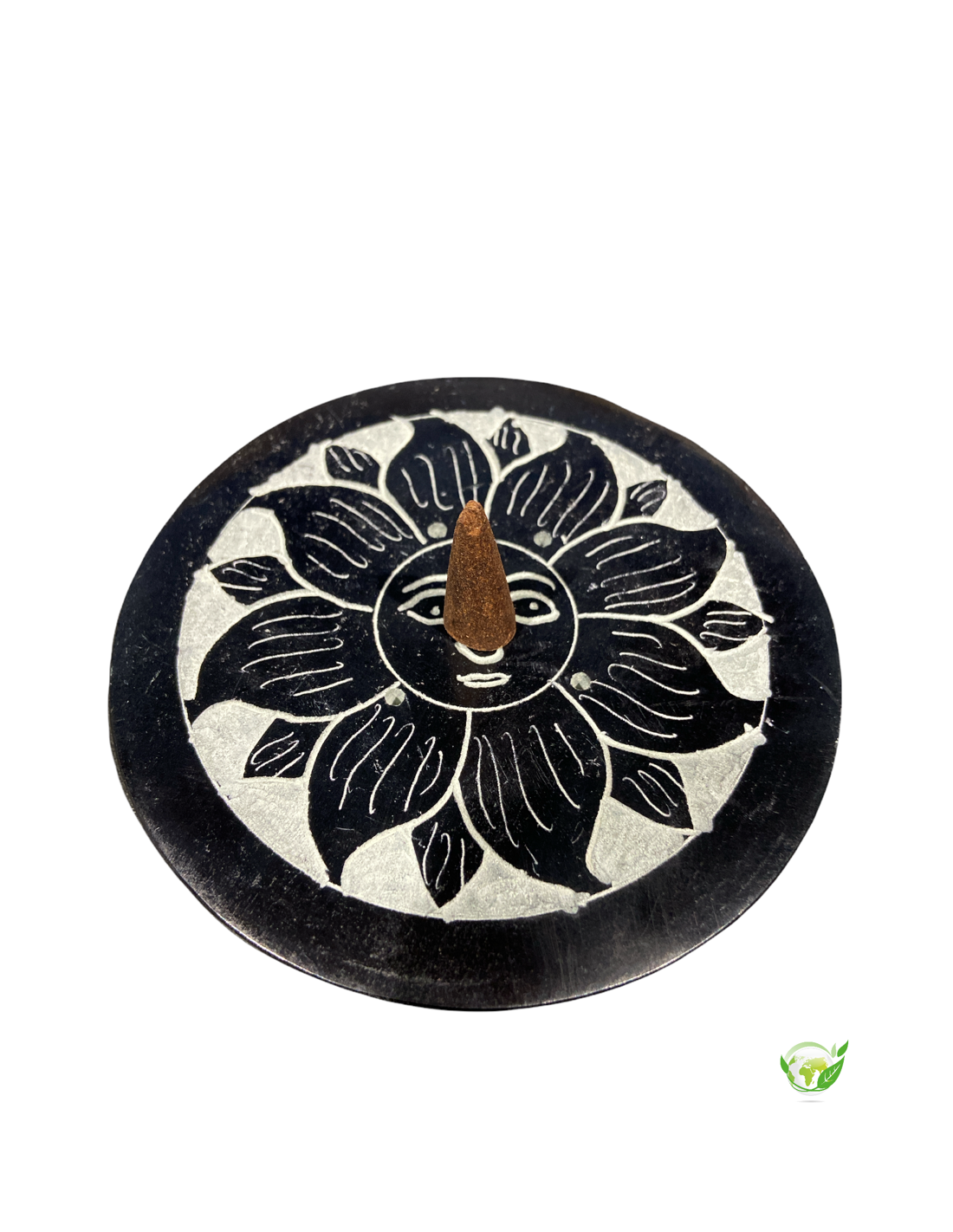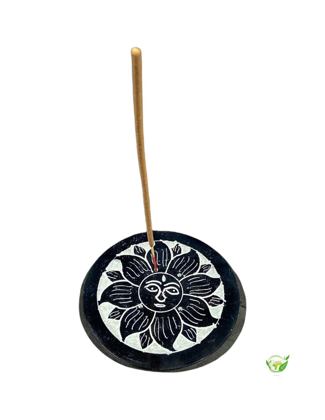 Quoi de plus beau qu'un joli porte-encens de 10 cm rond artisanal en pierre pour décorer votre intérieur. Il comporte 4 emplacements pour bâtonnets d’encens et un emplacement pour cônes d’encens.