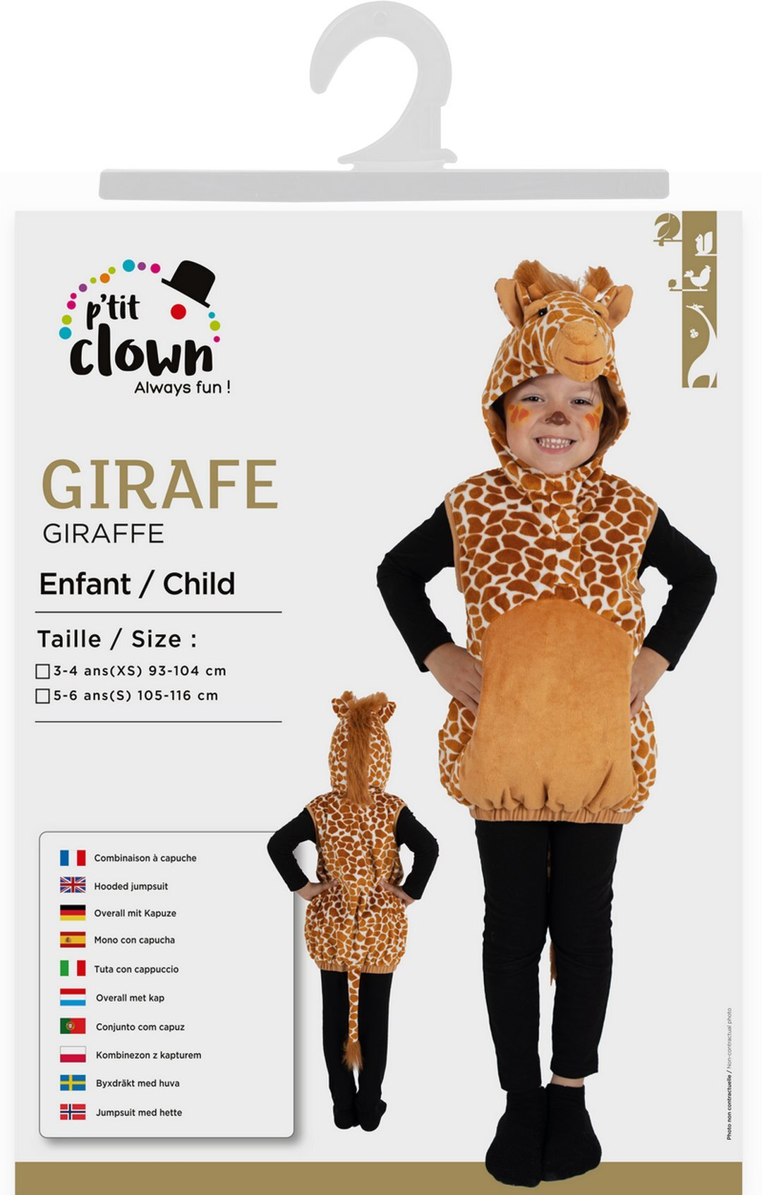 Offrez à votre enfant l'opportunité de se transformer en une adorable girafe avec ce déguisement signé Ptit Clown. Parfait pour le carnaval, les fêtes costumées ou les spectacles scolaires, ce costume ravira les petits amoureux des animaux.