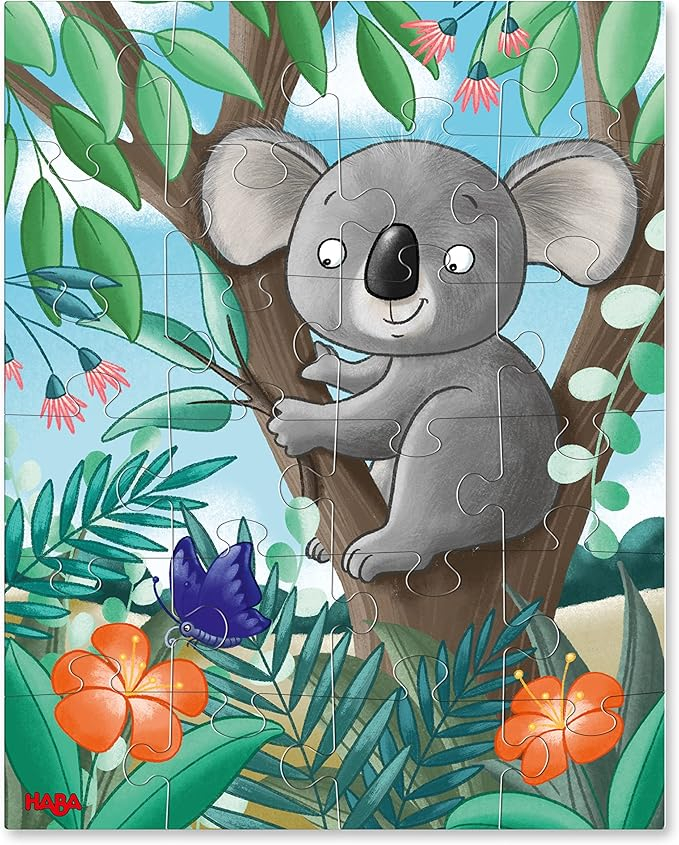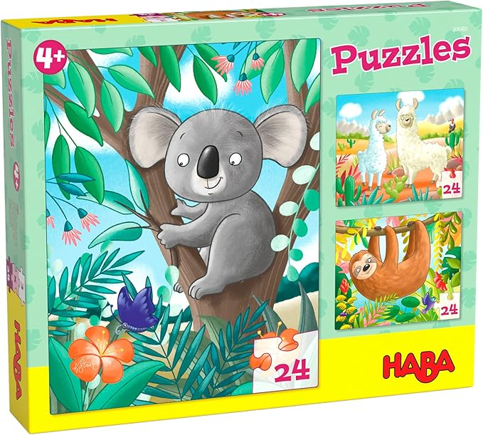 Découvrez le Puzzle 3 en 1 de Haba : 3 puzzles de 24 pièces avec des illustrations de koala, paresseux et lamas. Idéal pour les enfants dès 4 ans, ce jeu stimule la concentration et la motricité fine.