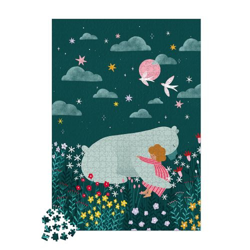 Moment de tendresse sous le ciel étoilé. Offrez-vous un moment de plaisir avec ce puzzle de 1000 pièces, conçu pour les enfants dès 8 ans et leurs parents. Ce puzzle sur le thème de l’amitié est plus qu’un simple jeu, c’est une aventure qui attend d’être découverte. Dans cette clairière où fleurissent les fleurs des champs, deux amis s'enlacent à la nuit tombée. Une fillette et son ami l'ours s'apprêtent à se souhaiter une bonne nuit, ou peut-être ont-ils simplement besoin d'une étreinte. On peut alors ressentir la douceur et la chaleur de l'ours envelopper sa complice, il est la présence réconfortante et bienveillante qu'est tout ami. Ensemble, ils sont confiants et apaisés, et la nuit devient féérique. Chaque pièce du puzzle est une étape de ce voyage, offrant une expérience de jeu enrichissante qui stimule la concentration, la patience et la résolution de problèmes. En assemblant ce puzzle, les enfants comme les parents partagent des moments de complicité et de calme. Ils se détendent et se libèrent du stress quotidien. Celui-ci est présenté dans une boîte attrayante, idéale pour offrir ou pour ranger les pièces. Découvrez le plaisir de résoudre des casse-têtes avec notre puzzle de l’amitié de 1000 pièces, et créez des souvenirs précieux tout en stimulant votre esprit. Plus qu’un jeu, c’est un voyage dans l’univers de l’amitié. Ce puzzle est fabriqué en Europe et composé de matériaux certifiés FSC™ et de matériaux contrôlés.