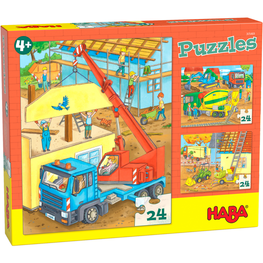 Le puzzle en bois 'Le chantier' de HABA est un jeu d'encastrement conçu pour les enfants dès 12 mois. Il comprend cinq pièces circulaires représentant des éléments du chantier, favorisant la motricité fine et l'apprentissage des formes et couleurs.