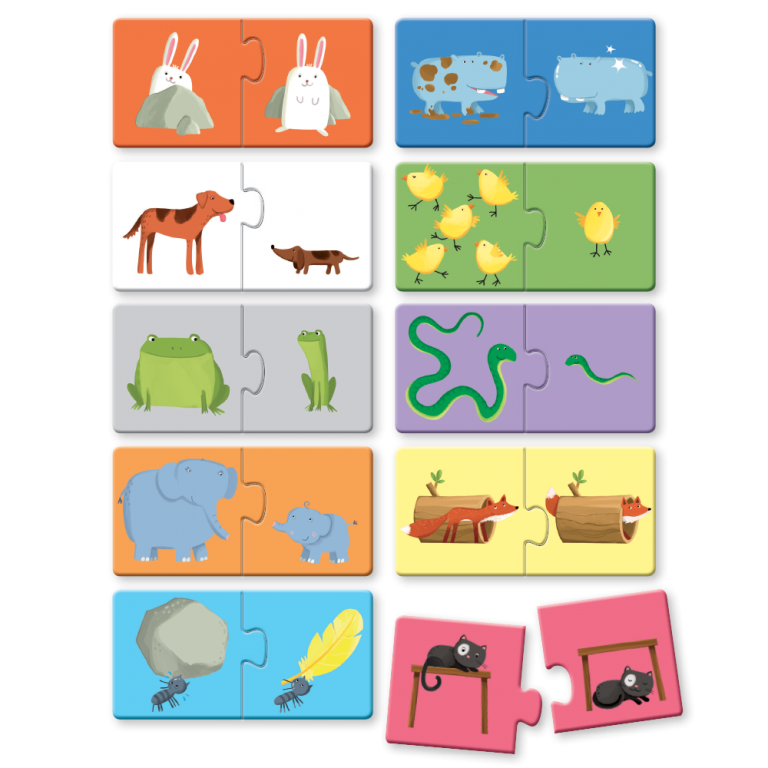 Un coffret éducatif comprenant un livre de 10 pages et 10 mini-puzzles pour apprendre les contraires en s'amusant. Idéal pour les enfants dès 2 ans.