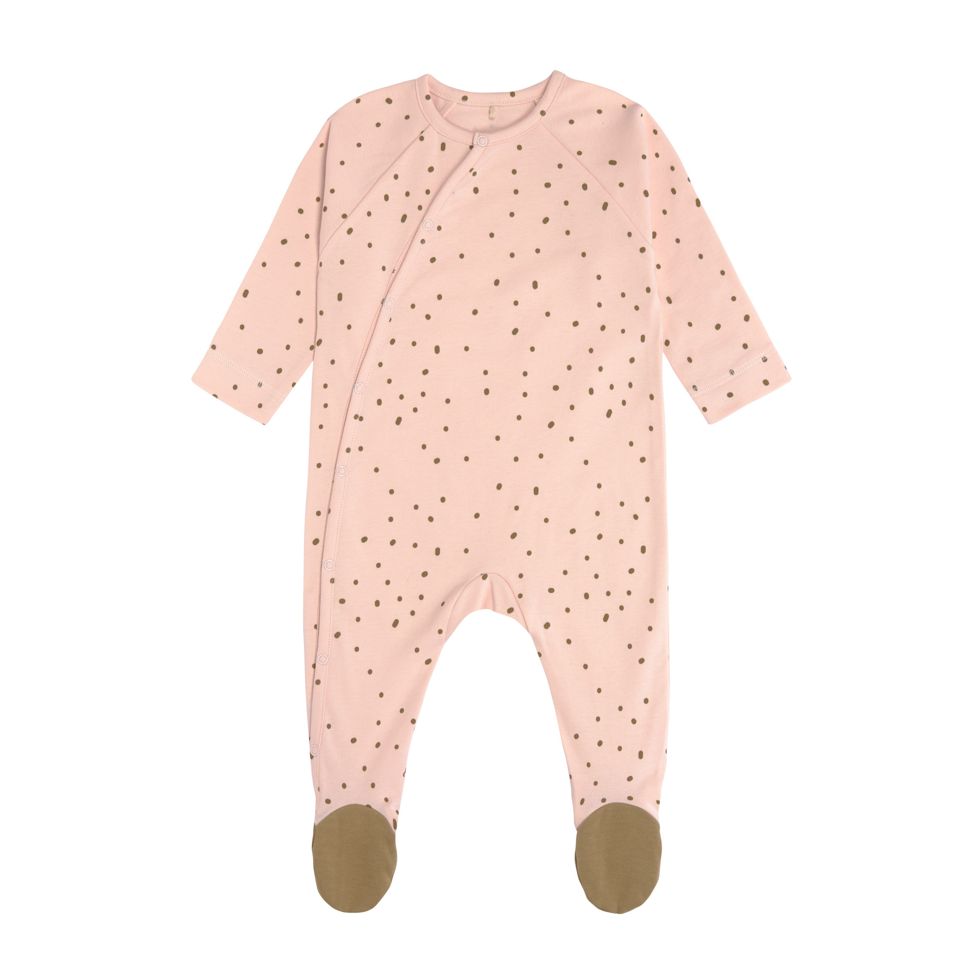 Pyjama bébé LÄSSIG Cozy Colors en rose poudré, fabriqué en 100% coton biologique certifié GOTS. Doté de manches longues, jambes longues sans pieds et d'une ouverture complète sur le devant avec boutons-pression pour un habillage facile. Lavable en machine à 40°C.