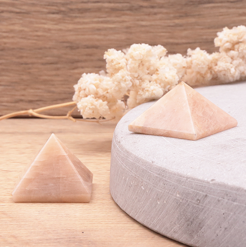 Découvrez l'élégance et les bienfaits de notre pyramide en pierre de lune orangée, mesurant entre 15 et 25 mm. Cette pierre naturelle, originaire d'Inde et de qualité A, est réputée pour ses vertus en lithothérapie.