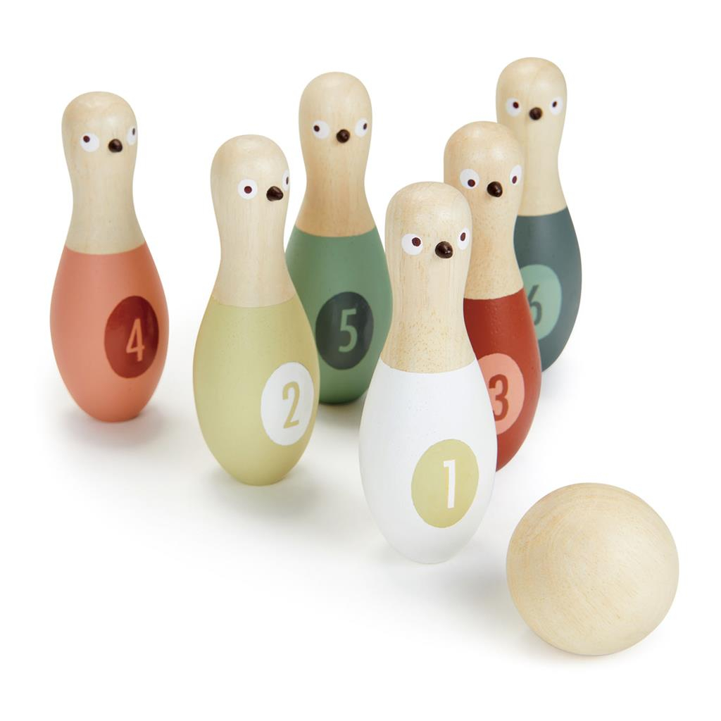 Le jeu de quilles oiseaux en bois de Tender Leaf Toys est un jouet éducatif et écologique pour enfants dès 3 ans, comprenant six quilles colorées en forme d'oiseaux et une balle en bois massif. Il favorise la coordination et la motricité, tout en introduisant les notions de chiffres et de couleurs. Fabriqué en bois d'hévéa durable avec des peintures non toxiques, ce jeu est accompagné d'un sac de rangement en tissu pour faciliter le transport et le stockage.