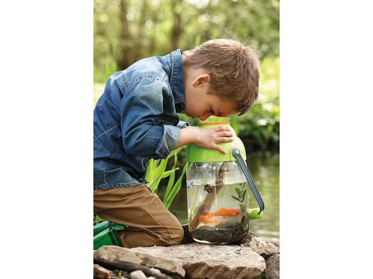 La nature offre aux enfants beaucoup de choses à découvrir: insectes, escargots, feuilles, fossiles …. Avec ce récipient à loupe intégrée, ils ont la possibilité de contempler et observer tout cela dans les moindres détails et de transporter leurs trouvailles en toute sécurité. Avec trous d’aération et loupe dans le couvercle dévissable.